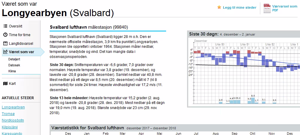 Wenn man Malmö außer Acht lässt dann sind die Temperatur-Prognosen für die restlichen Orte in Schweden ziemlich gut, das heißt frostig. Jokkmokk, Gällivare, Lappeasuvanto und Karesuando sogar auf unter -20°C. Auch auf Svalbard soll es zweistellig kalt bleiben.