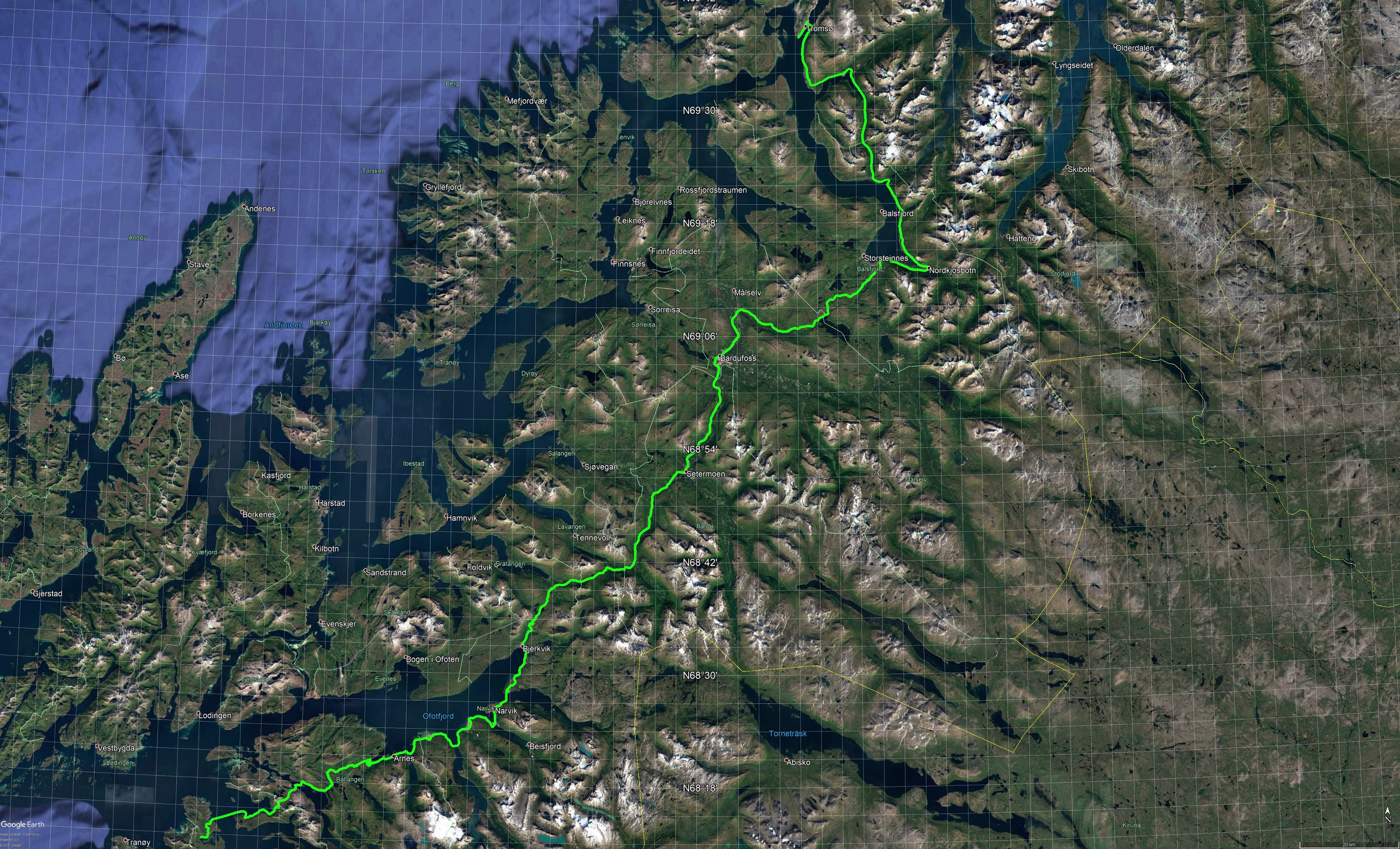 Hinter jeder Biegung gab es wieder etwas Neues zu sehen. Da war die Aktion gestern am Saltfjellet schnell vergessen. Durch die vielen Stopps verging die Zeit wie im Flug. Langsam setzte dann auch die Dämmerung ein, was besonders bei solch klaren Wetterverhältnissen ein Traum ist, setzt dann dazu noch passende klassische Musik ein ist das Erlebnis perfekt.