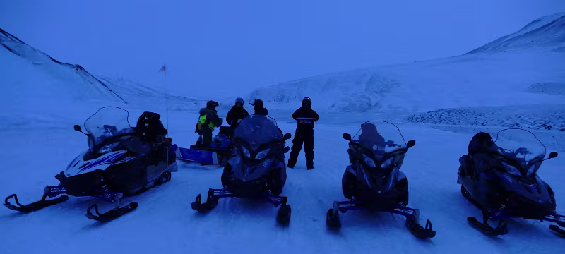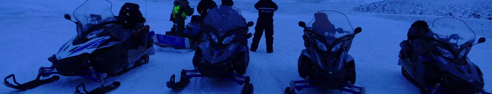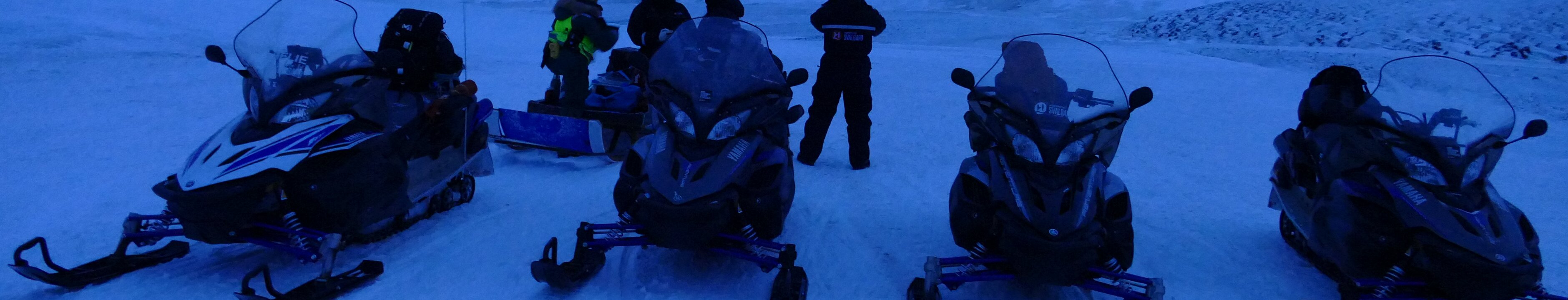 Im Abholfahrzeug saßen nur noch weitere 3 Personen, ein norwegisches Paar und ein Eidgenosse, wie sich heraus stellte. Und zwar aus der deutschsprachigen Schweiz. Zunächst wurde die Ausrüstung verteilt, jeder Teilnehmer bekommt Schuhe, eine Balaklava (Balaclava), also eine Sturmhaube, einen Helm und einen warmen Anzug. Da hätte ich mir eigentlich einen Teil meiner eigenen Ausrüstung sparen können. Der Raum in dem wir die Sachen ausgehändigt bekommen haben war sehr warm, schon beim Anprobieren gerät man leicht ins Schwitzen. Dann gab es noch eine kurze Einweisung über das Verhalten in der freien Natur und natürlich wie der Scooter funktioniert. Erstaunlich einfach, man muss nur Gas geben, die Bremse braucht man eher selten, denn sofort wenn man das Gas weg nimmt verlangsamt sich die Fahrt rasch.