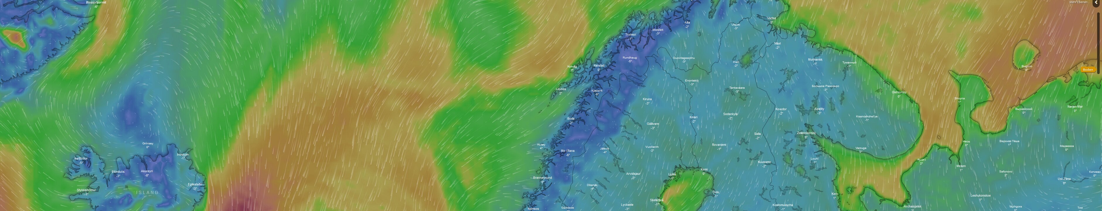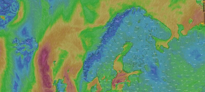 Auf der Homepage von Windy gibt es schön dargestellte Windvorhersagen. Windy Vorhersage für Norge