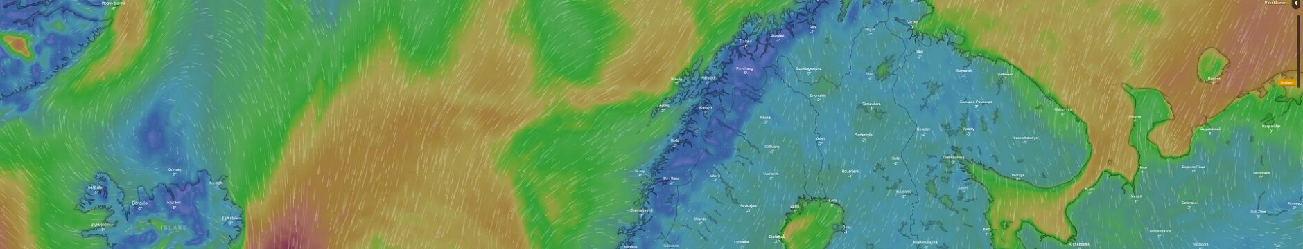Auf der Homepage von Windy gibt es schön dargestellte Windvorhersagen. Windy Vorhersage für Norge