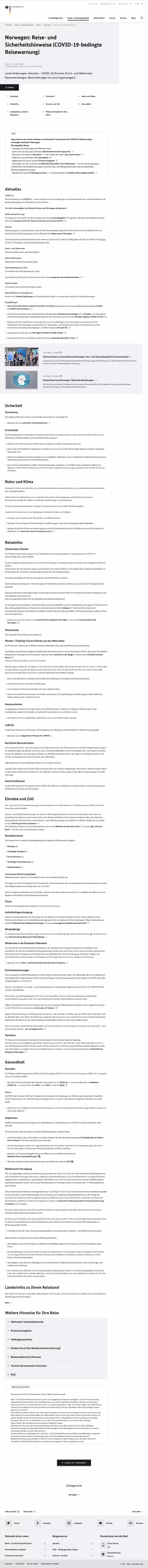 Corona Norwegen Reise- und Sicherheitshinweise (COVID-19-bedingte Reisewarnung) Stand 28.02.2022