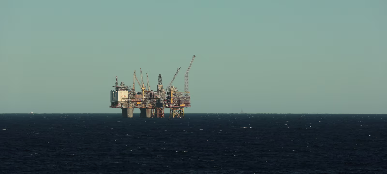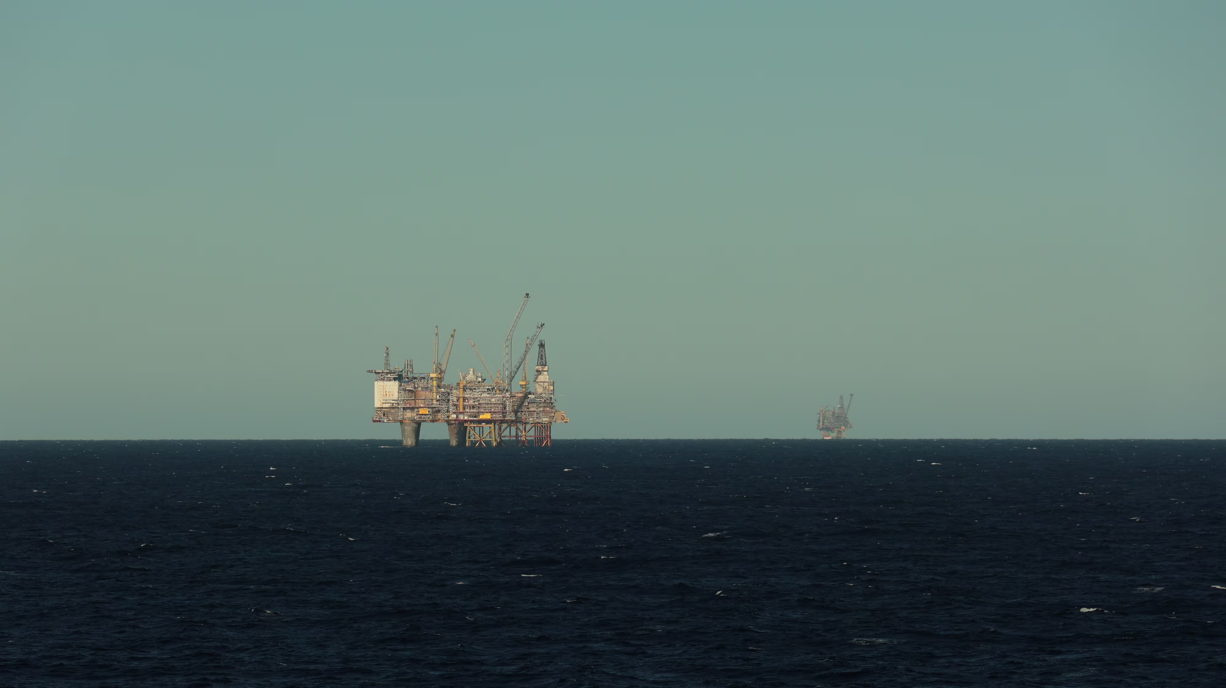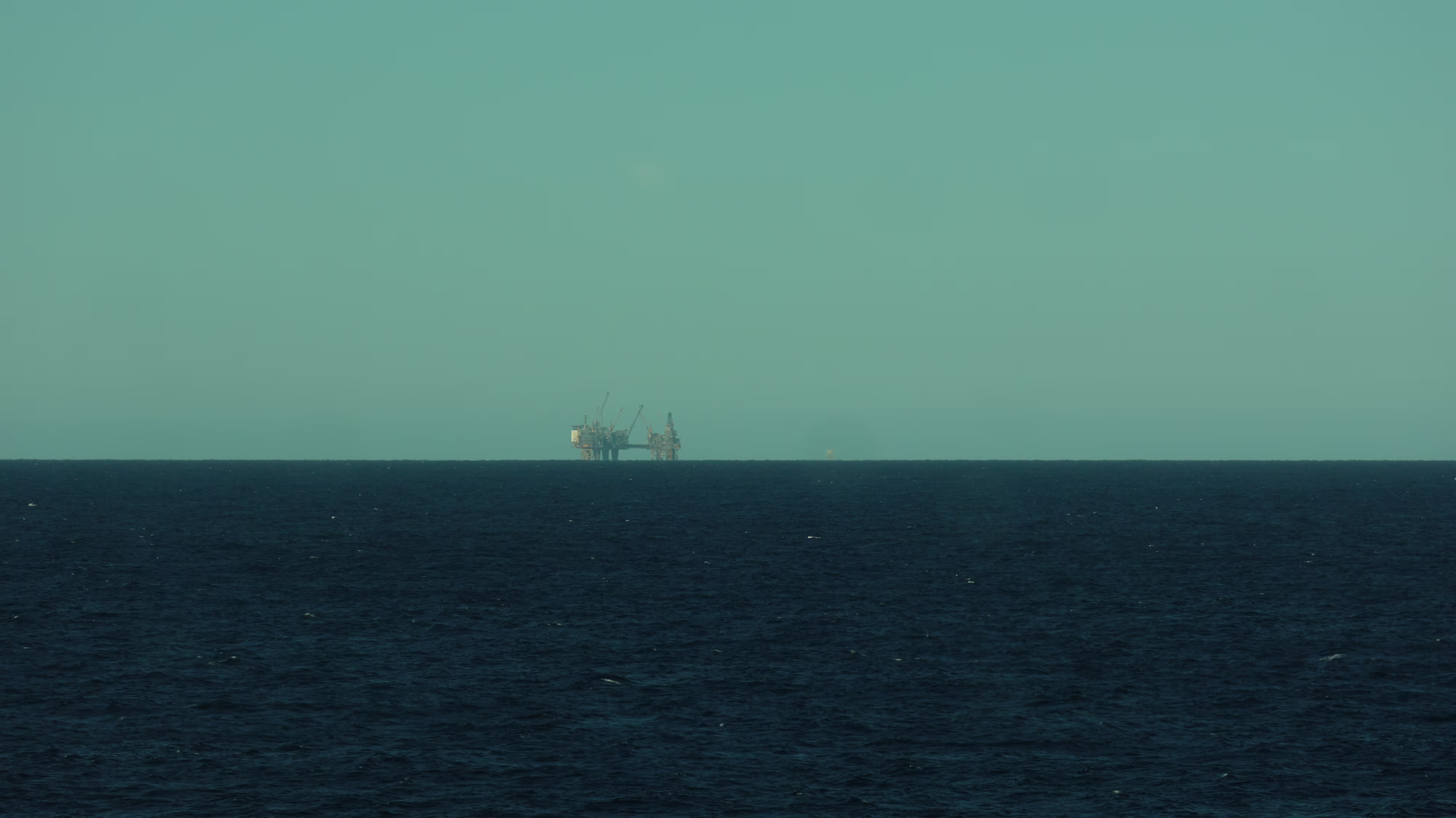 Nun kommt der phantastische Teil des Tages. Gut eingepackt, denn da sollte man sich nicht täuschen lassen von der tollen Sonne, ging es los auf Deck. Je nach dem wo man sich aufhielt war es windstill und in der Sonne angenehm warm oder es blies einem eine heftige Brise um die Öhrchen. Nun könnte man denken hier draußen auf hoher See gäbe es außer Wasser ja nun gerade mal gar nie nix zu sehen. Weit gefehlt, hier ragten gerade die Bohrinseln wie Pilze aus dem Boden. Zwei Stück haben wir in relativ naher Entfernung passiert, wenngleich sie sicher trotzdem noch einige Kilometer entfernt waren. Selbst mit meinem Zoom an der Kamera konnte ich ihnen nicht so richtig zu Leibe rücken.