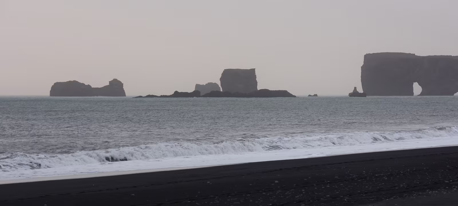 Nun war es nicht mehr weit bis nach Vík. Über einen Bergkamm fahrend kommt man in den Ort runter. Alles findet sich wie vorher ausgekundschaftet. Es ist noch gut hell, ich packe das Zeugs aus dem Auto und marschiere los zur allseits präsenten Kirche auf dem Hügel. Ja, die Sicht ist auch hier etwas trüb, aber ich will mich wahrlich nicht beschweren.