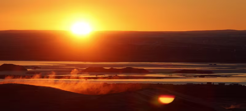 Ich blicke aus dem Fenster (Richtung Osten) und sehe deutlich Lichter, das müsste Norge sein, es ist 22:42 Uhr isländischer Zeit, kann ich ja auf dem GPX-Tack überprüfen. Gegen 22:54 Uhr sieht man jede Menge rot blinkende Objekte in östlicher Richtung, könnten Offshore-Windräder sein.