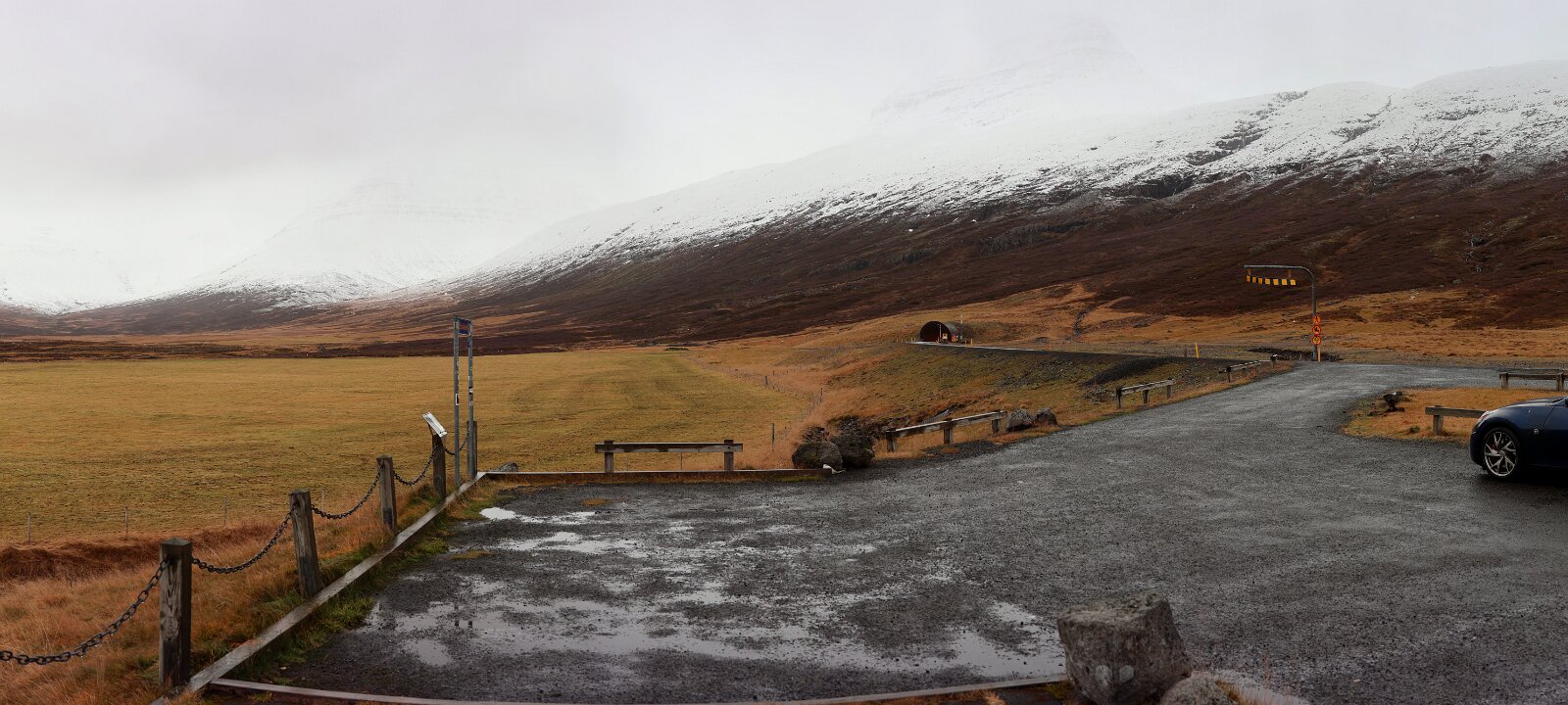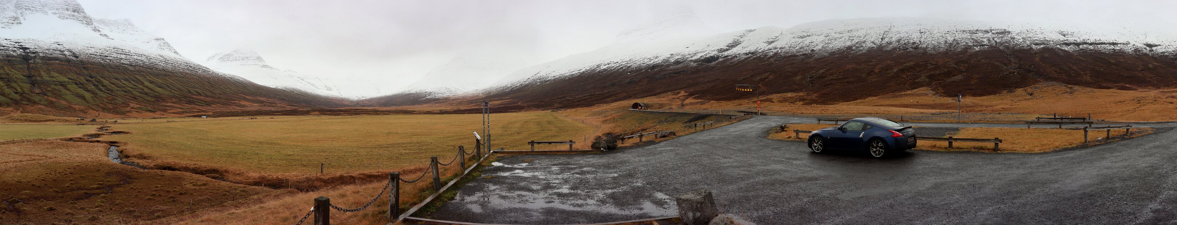 Höfn í Hornafirði – Egilsstaðir Am Eingang des Fáskrúðsfjarðargöng. Die Fáskrúðsfjarðargöng sind ein Straßentunnel im Osten von Island. Panorma Mehr …