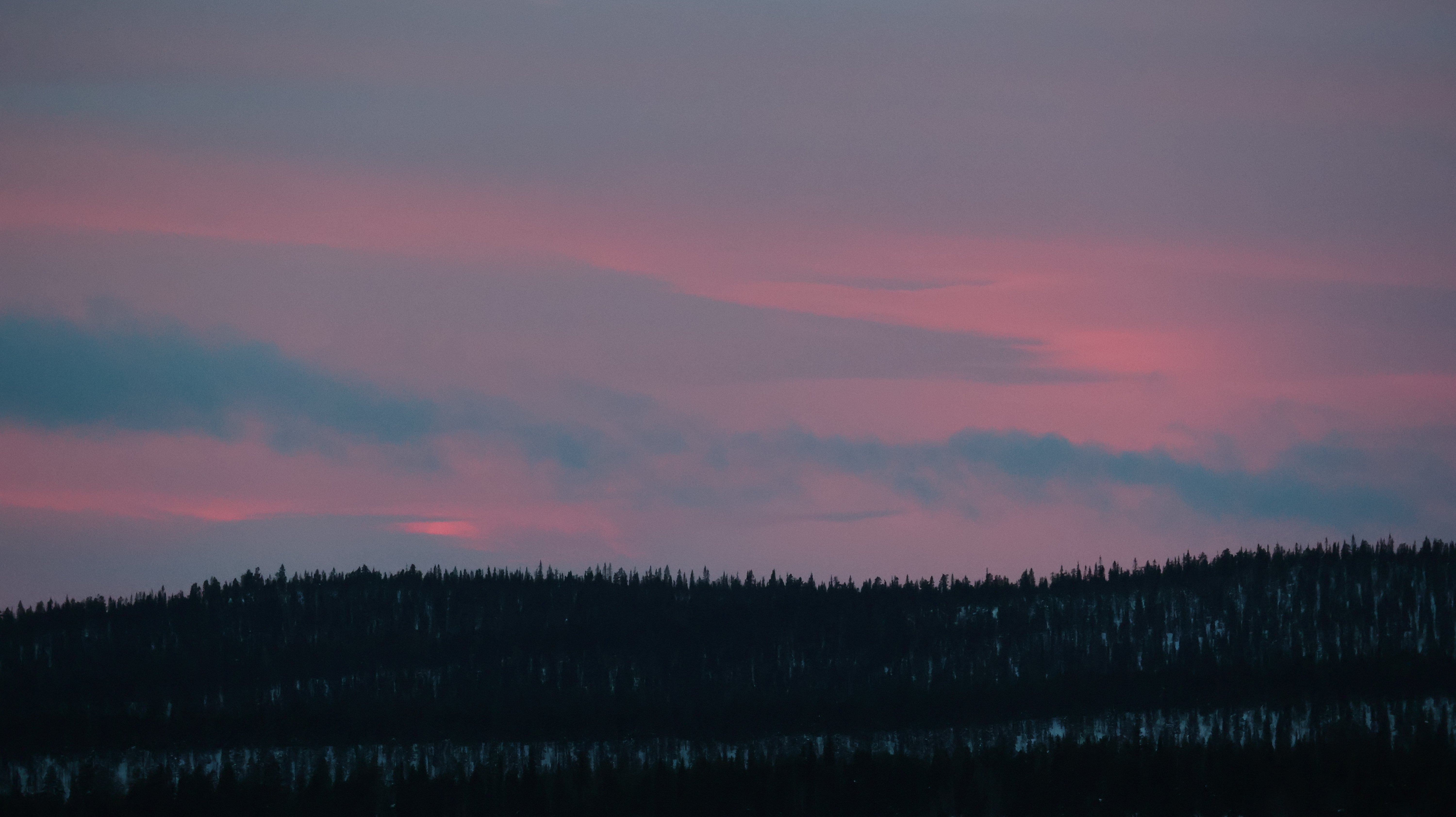 Auf finnischer Seite kann man für einige Zeit die sehr tief stehende Sonne erhaschen. Allerdings sind die Gelegenheiten sehr selten wo man mal rechts ran fahren kann um die Karre abzustellen. Dann hatte ich auch noch zwei hartnäckige Verfolger die ich nicht dazu bringen konnte mich mal zu überholen, damit ich nicht so getrieben durch die Gegend fuhr. Die eine oder andere Möglichkeit doch mal von der Straße runter zu fahren, den Wagen zu parkieren und doch noch ein paar Meter von der Straße weg zu gehen waren so alle an mir vorbei gezogen. <gnarf>