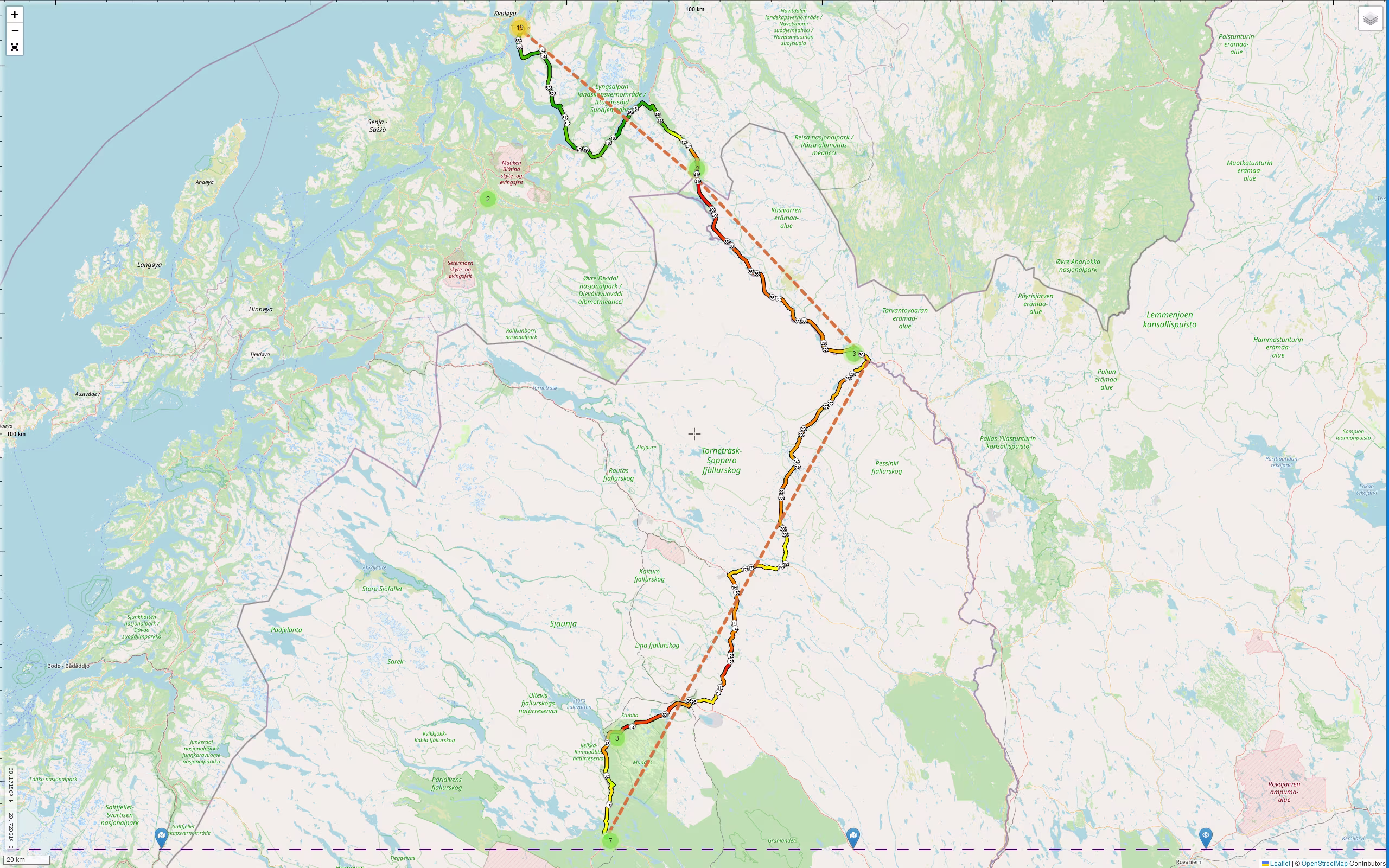Wer hätte das gedacht, endlich schlägt G__gle Maps auf diesem Abschnitt mal die Strecke vor die wirklich Sinn macht, nämlich die die ich bisher fast immer gefahren bin, die über Suomi. Die Route über Narvik ist nicht nur fast 40 km länger sondern führt auch über das Björnfjell das nicht ganz ohne ist.