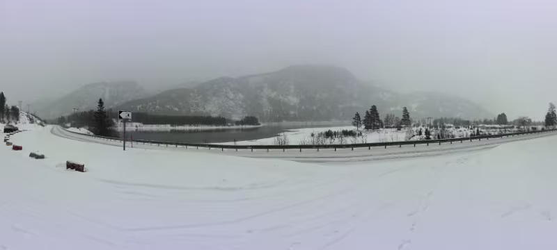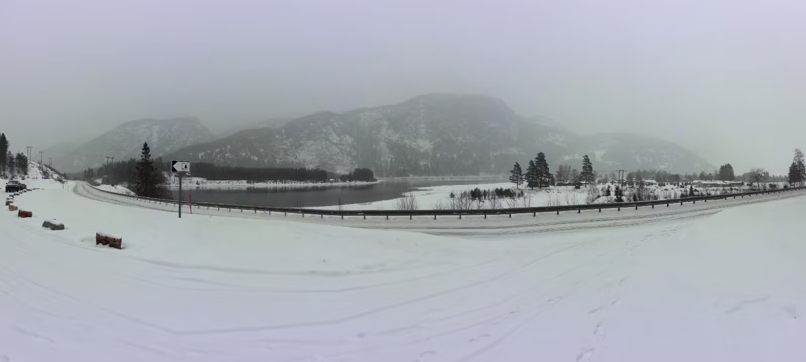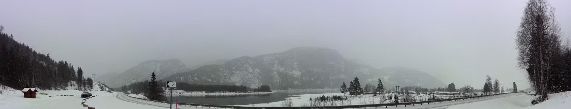 Verschlafener Blick aus dem Fenster, der direkt auf die [E134] fällt, kurz vor 6 Uhr. Sieht alles OK aus, kein Schneefall. Kann das wirklich sein? Aus dem Bett raus und mal richtig gucken. Oi, da schneit es ganz fein, man sieht es eigentlich nur an den Lampen an der Straße. Frühstück gibt es erst um 8 Uhr. Im Prinzip habe ich gar keine Eile, die Fähre legt um 16:30 Uhr ab, man soll spätestens eine Stunde vorher da sein. Für noch nicht mal 300 km keine große Sache. Frühstück, alles wieder einpacken, ins Auto verfrachten. Das ist nur sehr dünn verschneit, richtig kalt scheint es auch nicht zu sein, in der Nase britzelt es nicht. Der Parkplatz ist mehr oder weniger frei von neuem Schnee (alter liegt natürlich schon), da bleibe ich nicht stecken. Abfahrt bei Außentemperatur von -10 °C. Dann die Steigung. Es läuft gut, ein Schneepflug kommt mir entgegen, meine Spur ist etwas mit Neuschnee belegt, aber nichts was hindert.