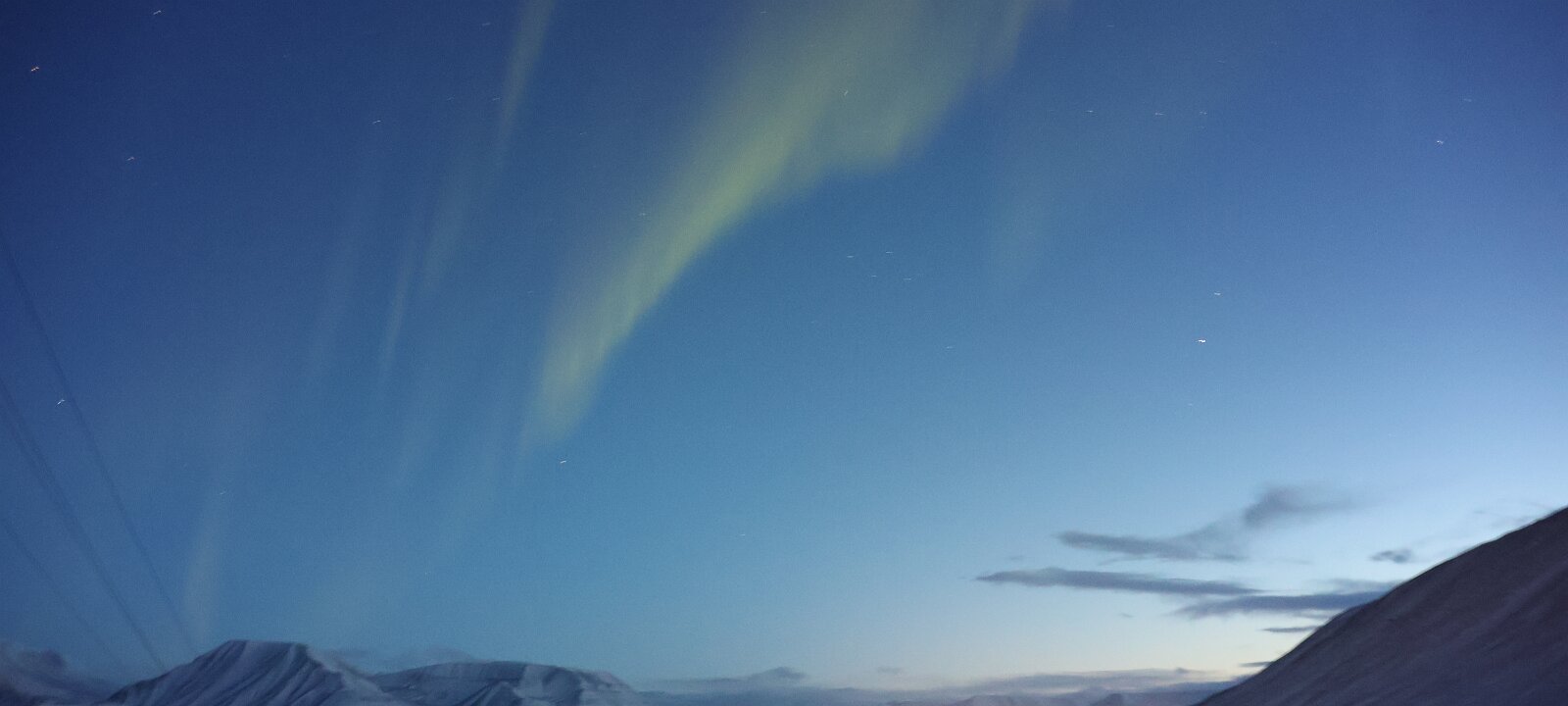 Ganz schwache Polarlichter sind zu sehen, es ist 12:15 Uhr.