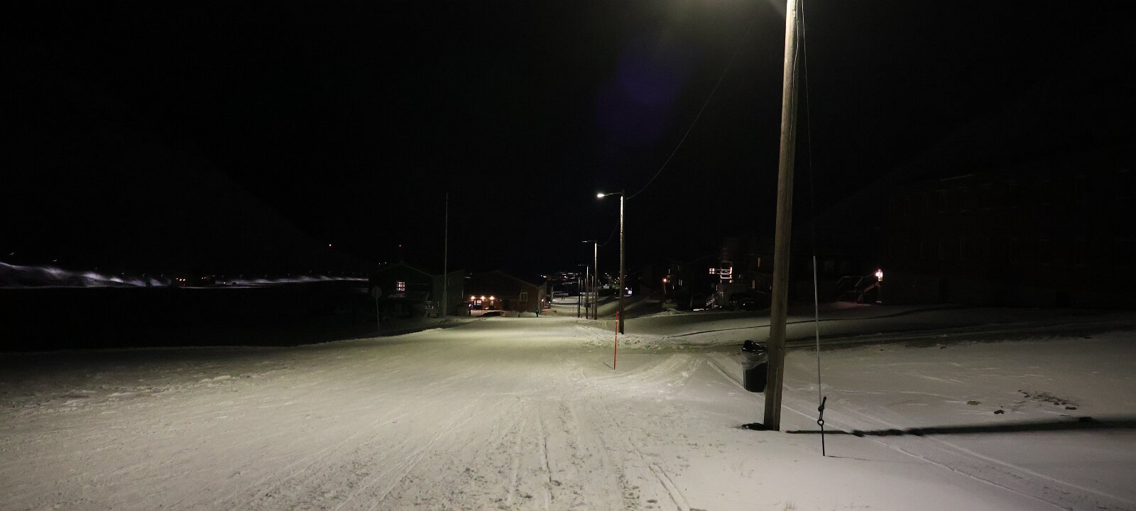 Longyearbyen Der Weihnachtsbaum ist nun beleuchtet.