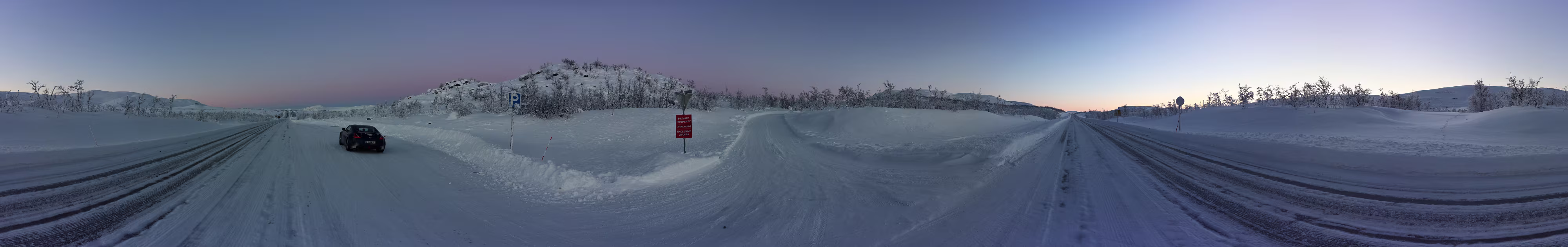 Also lief es dann darauf hinaus, dass ich wieder auf dem ersten Parkplatz am Ortseingang von Kilpisjärvi anhielt und dann einfach die Drohne senkrecht nach oben schickte, einmal 360°, wieder runter und gut ist.