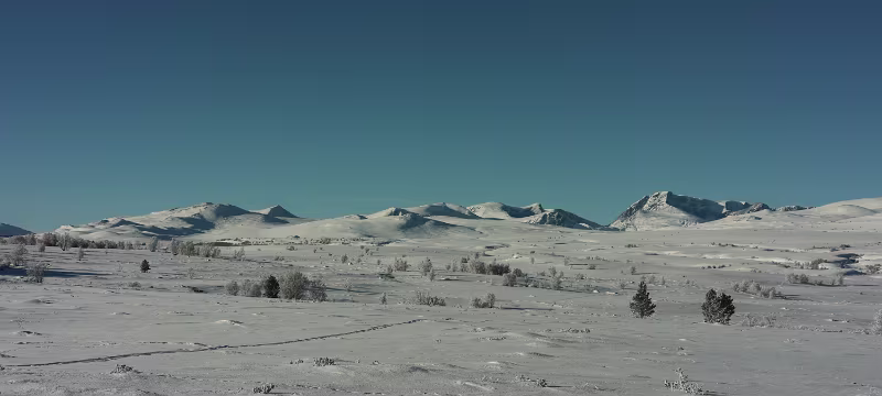 Genau zur richtigen Zeit Start in Trondheim. Temperatur immerhin -10° C. Nach einer ganzen Weile geht es runter auf -21° C, es hat viel Schnee in der Landschaft, die Sonne lacht vom mehr oder weniger blauen Himmel. In Oppdal wird getankt, dann ist das auch erledigt für heute.
