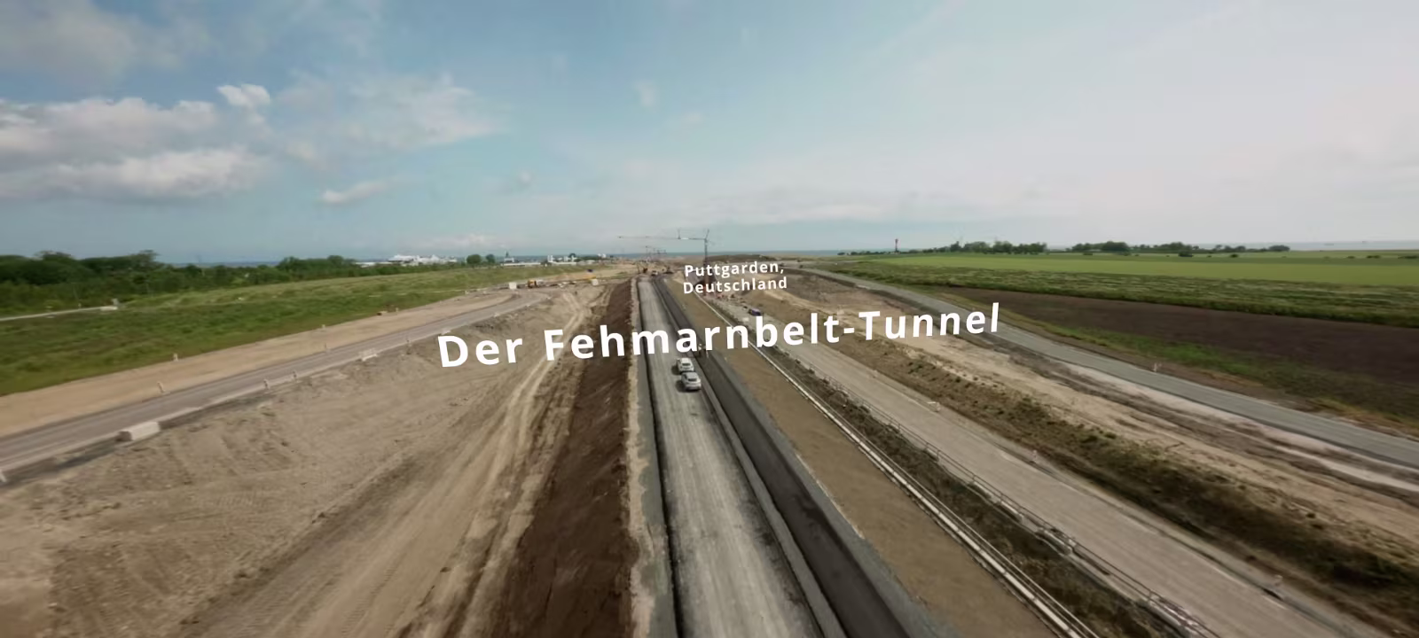 Drohnenflug über die deutsche und dänische Tunnelbaustelle Bei bestem Wetter ist Dane Grace, einer der talentiertesten Drohnenpiloten der Welt, mit seiner Drohne über die deutsche und dänische Baustelle für den...