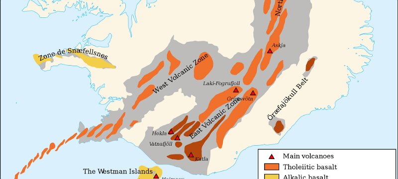 Das „Hero“-Bild zeigt eine Karte mit den wichtigsten Vulkanen auf Ísland. © ???.