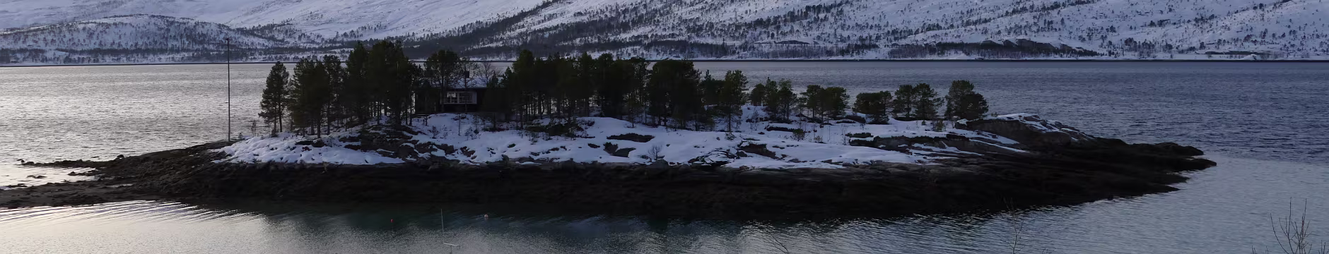 Das „Hero“-Bild zeigt eine kleine Insel im Forsahavet Teil des Efjorden am 29.01.2020.
