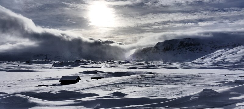 Das „Hero“-Bild zeigt einen Blick aus dem Haukeliseter am 08.02.2019.